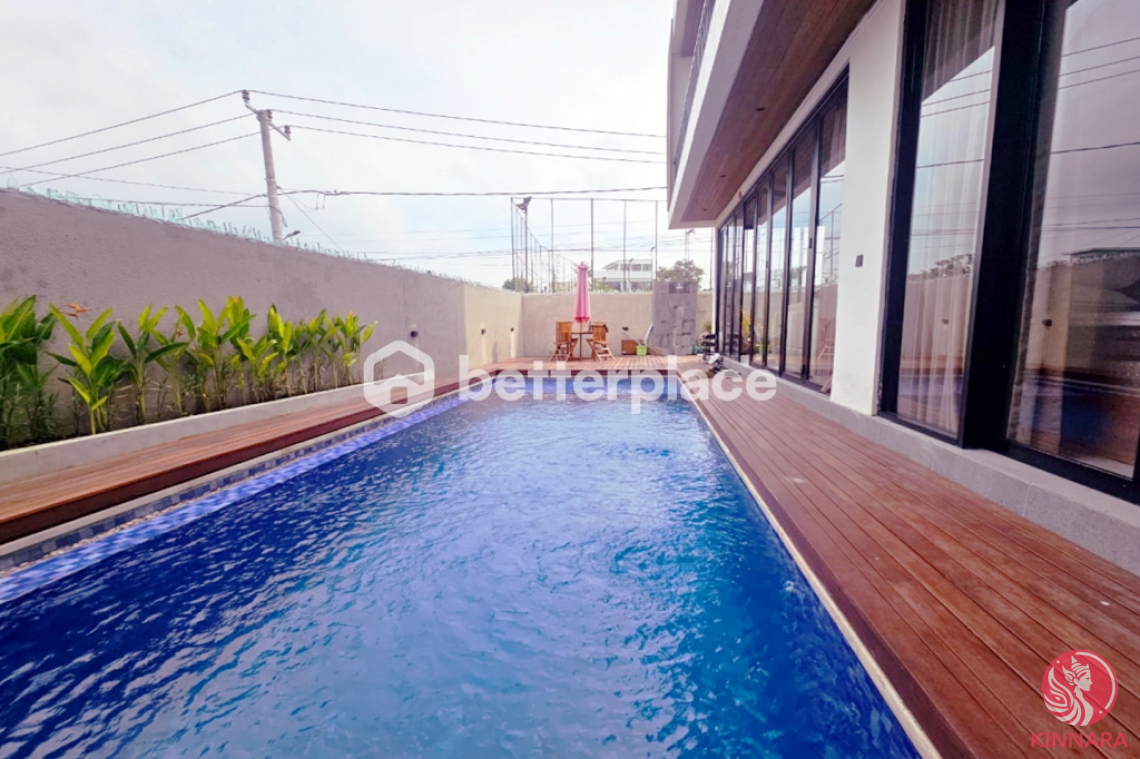 Floor-to-ceiling windows flood the interiors with natural light, creating a warm and inviting ambiance.Just a short 15-minute drive from Batu Bolong Beach, this villa sits in an ideal location, surrounded by Canggu’s best restaurants, trendy cafés, boutique shops, and entertainment spots.