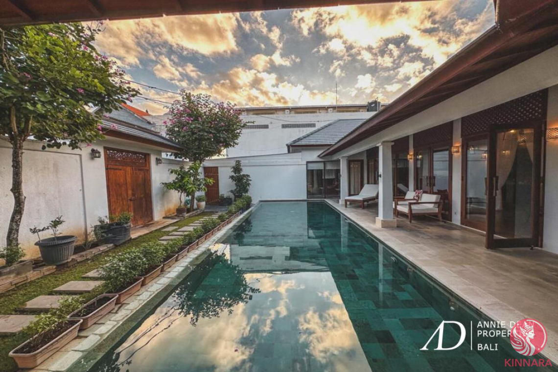 The villa is built on a 600-square-meter plot, with a spacious 450-square-meter building completed in 2019. Designed for comfort, the property features three bedrooms, each with an ensuite bathroom, along with a guest toilet and a maid’s room. The living and dining areas overlook a beautiful garden and swimming pool.