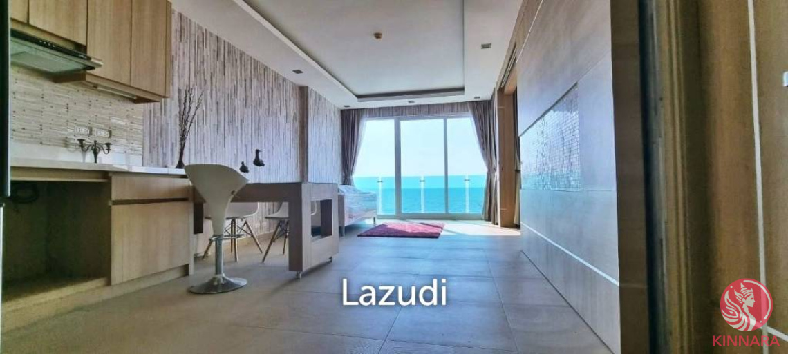 This is 1 Bedroom, 1 Bathroom Beachfront Condo for Sale. Offering 60.99 Sqm of living area, located on the 3rd floor, comes full furnished, European kitchen, electric hob microwave, washing machine, built-in wardrobe, en-suite bathroom, sofa set with TV, balcony with lovely sea view and pool view.