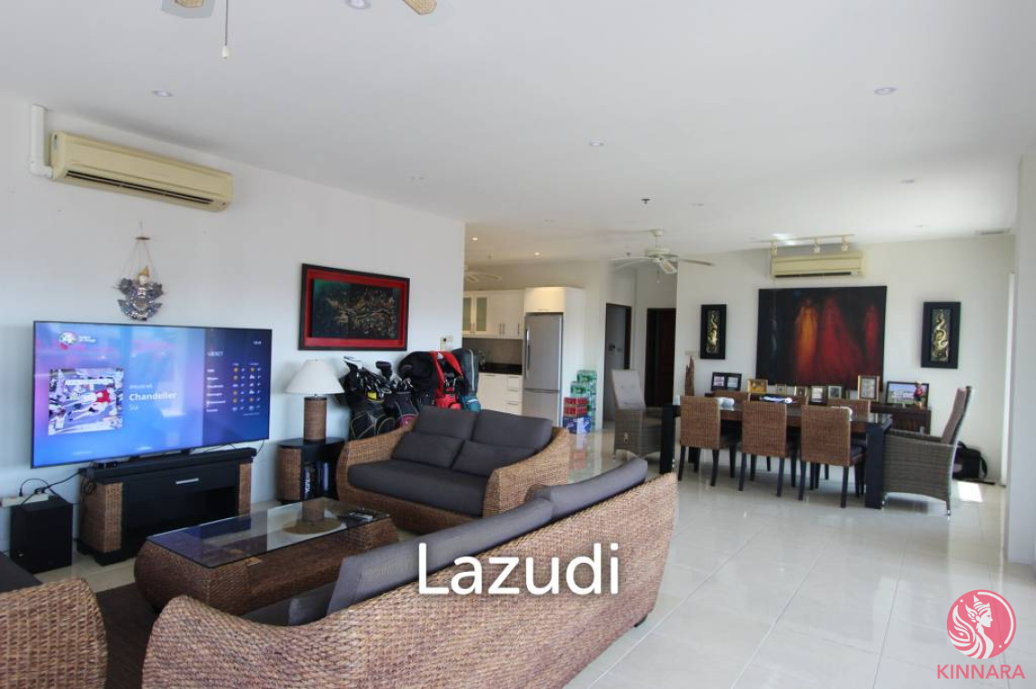 This is 3 Bedroom, 2 Bathroom Condo for Sale in Pratumnak area. Is Available in Thai Company Name Ownership, offering 199.54 Sqm of living area, located on the 6th floor, comes full furnished, European kitchen, electric hop, electric oven, fridge, air con,open plan living area with comfortable sofa, flat screen TV, ceiling fan in living room and large balcony with sea view.