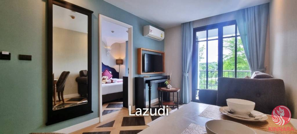 This is 1 Bedroom , 1 Bathroom Condo for Sale in Jomtien, offering 34.78 Sqm of living area, located on the 2nd floor. Comes full furnished, built-in European kitchen, electric hob, fridge, microwave, dining table, comfortable sofa with flat screen TV, en-suite bathroom, built-in wardrobe and balcony with pool view.