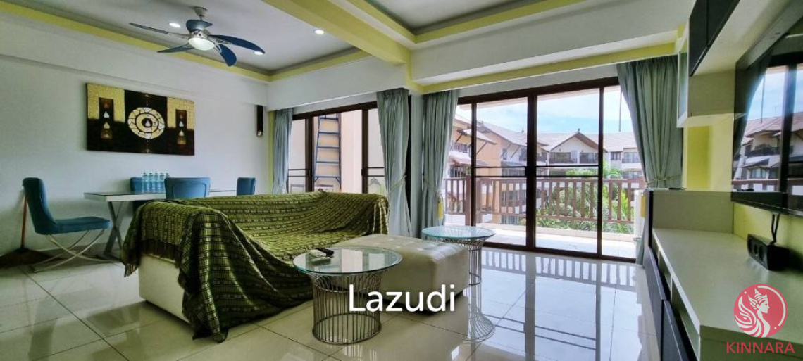 This is 2 Bedrooms, 2 Bathrooms Deplex Condo for Sale in Thappraya, offering 102 Sqm of living area, located on the 5th floor, comes full furnished, European kitchen, electric hob, electric oven, refrigerator, microwave, dinning table, comfortable sofa with flat screen TV, built-in wardrobe, storage room, and two balconies with garden view.