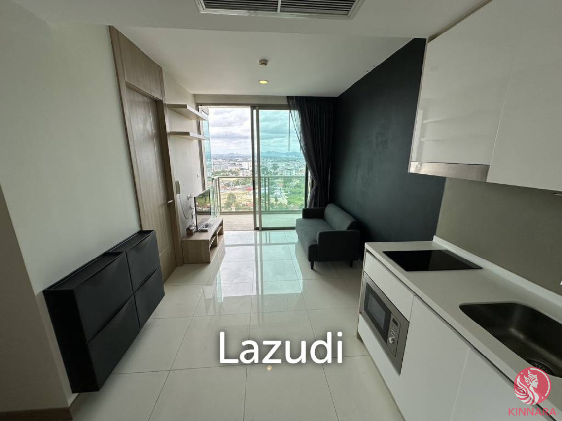 This is 1 Bedroom, 1 Bathroom Condo for Sale in Wongamat. Is Available in Thai Name Ownership, offering 36.15 Sqm of living area, located on the 25th floor, comes full furnished, open plan living area with comfortable sofa, flat screen TV, European kitchen, electric hob, microwave, built-in wardrobe, en-suite bathroom, and balcony with city view.