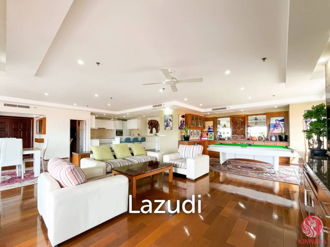 This is 2 Bedroom, 4 Bathroom Condo for Sale in Pratumnak. Is Available in Foreigner Name Ownership, offering 253.35 Sqm of living area, located on the 3rd floor, comes full furnished, Decoration Thai modern style, European kitchen, electric hob, electric oven, microwave, refrigerator, living area with comfortable sofa, flat screen TV, built-in wardrobe, sizeable bedroom, en-suite bathroom with bath tub, large balcony with sea view.