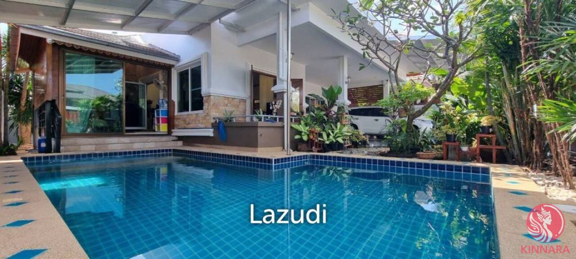 This is Modern House with private swimming pool for Sale in Chaiyaphruek area, sitting on 316 Sqm of land size, 215 Sqm of usable area, comes full furnished, European style solid Oak kitchen, large living area, built-in wardrobe in main bedroom, en-suite bathroom, covered car parking for up to 4 cars, pool with jacuzzi.