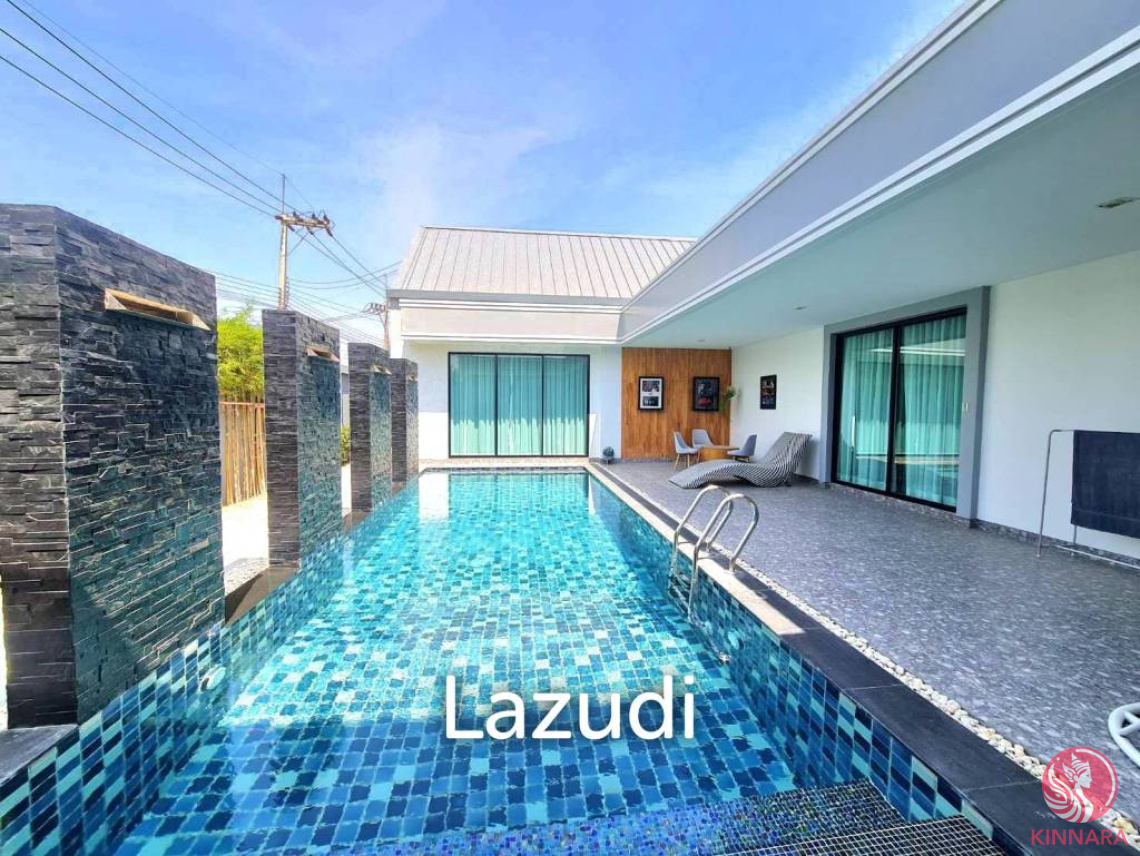 This is 3 Bedrooms, 3 Bathrooms, Pool Villa House in East Pattaya for Sale. Sitting on 544 Sqm of Land plot size, 203 Sqm of useable area, comes full furnished, ️Walk-in Closet, Remote control curtains, en-suite bathroom, ️Salt water system private swimming pool, pool bar, garden, car park, European kitchen, electric hob, electric oven and microwave.