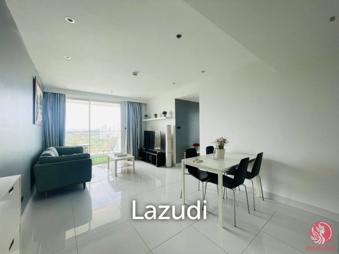 2 Bedrooms, 2 Bathrooms Sky Residence Condo for Sale, offering 66 Sqm of living area, located on the 22th floor, comes full furnished, European kitchen including electric hob, dining table, microwave, oven, refrigerator, sofa, flat screen TV, fitted wardrobe, en-suite Bathroom, and balcony with sea view.