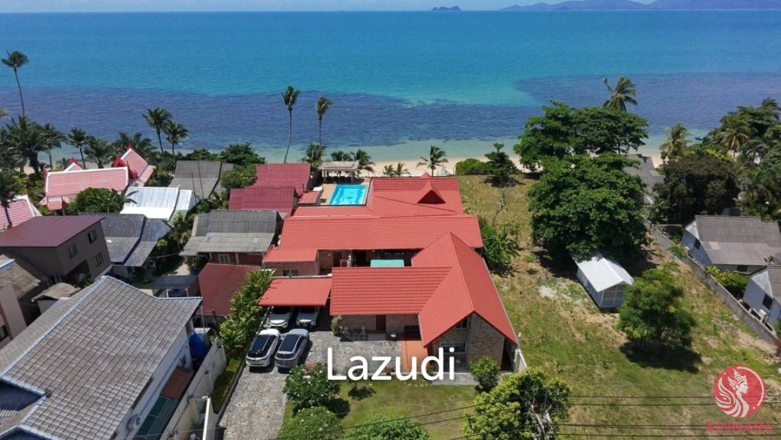 This stunning 9-bedroom, 9-bathroom beachfront villa is situated on the pristine Bang Por Beach, offering breathtaking ocean views and direct beach access. Spanning 1,612 sqm with a 23-meter beach frontage, this property is a rare gem, perfect for investment as a boutique resort or a private luxury villa.