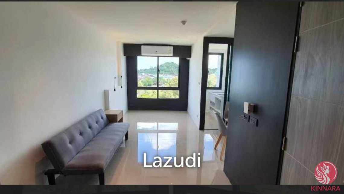 Affordable Condo with Stunning Views in KathuDiscover affordable luxury living in the heart of Kathu, Phuket, at the brand-new Utopia Central development. This impressive condo, located on the 7th floor of an 8-floor building, provides breathtaking views of lush mountains and the vibrant urban landscape from every room, enhancing your living experience with nature-inspired tranquility.Modern Comfort with a Touch of EleganceThe brightly lit living room features a large window, filling the space with natural light and offering a picturesque view of the surrounding scenery. The modern decor is designed in a minimalist style, featuring a stylish gray sofa and polished tile flooring. A split-type air conditioner ensures you remain comfortable all year round.The bedroom, spacious and illuminated with natural light, also offers an air conditioning unit and a large window to take in the scenic views.Functional and Stylish SpacesThe well-appointed bathroom includes a large mirror, a rectangular sink with a sleek wooden cabinet beneath, fully tiled walls, and modern fixtures providing both style and functionality.The compact kitchen is designed for convenience, with a single-basin sink, ample under-counter storage, and a large window that allows in plenty of natural light, making it an inviting space for culinary endeavors.Don’t miss the opportunity to own this leasehold condo at an unbeatable price of 2,800,000 THB, offe