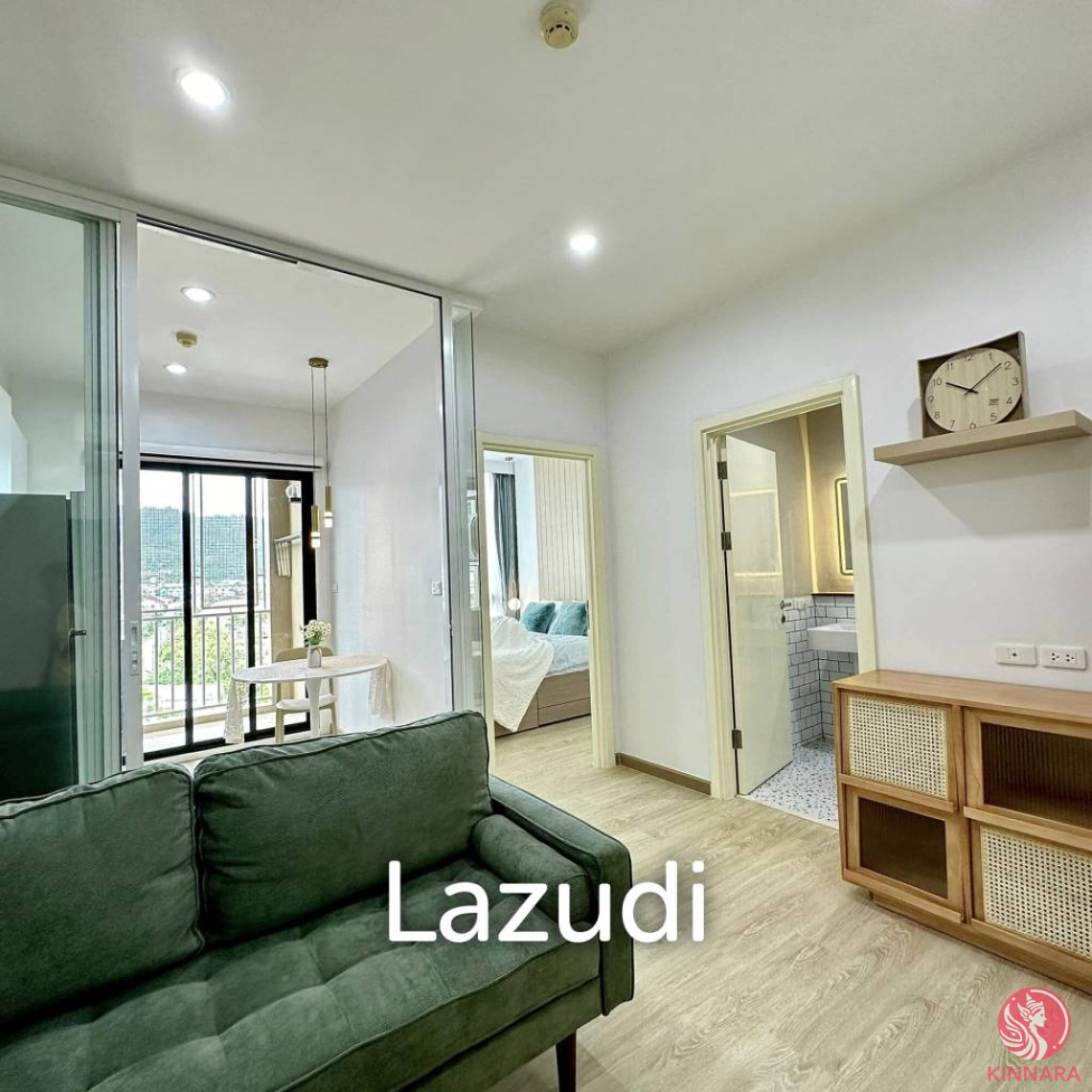 Modern 1-Bedroom Condo in The BASE Uptown-PhuketDiscover comfortable living in the heart of Phuket with this 1-bedroom, 1-bathroom condo in The BASE Uptown-Phuket. Located in Ratsada, Mueang Phuket, this sixth-floor unit offers an ideal blend of convenience and modern design, perfect for individuals or couples seeking a cozy retreat.Thoughtful, Modern InteriorsThe 36.27 sqm interior is fully furnished and features a bright and airy living area with a green sofa, wooden flooring, and ample natural light from large windows. The minimalist decor and recessed ceiling lights create a welcoming atmosphere. The kitchen is efficiently designed with white cabinetry, black countertops, and modern appliances including an electric stove, refrigerator, and built-in sink.Cozy Bedroom and Stylish BathroomThe bedroom is a serene space with a large bed, wall-mounted TV, hardwood flooring, and modern decor. The ample natural light enhances the relaxing environment. The bathroom boasts a glass shower enclosure, white subway tiles, and a wall-mounted sink with a modern mirror featuring backlighting, creating a spa-like feel.Prime Location with Excellent AmenitiesThe BASE Uptown-Phuket offers top-notch facilities including a swimming pool, fitness center, and lush garden areas. Located near shopping centers, restaurants, and transportation routes, this condo provides easy access to all necessities. Enjoy the scenic views of hilly terrain