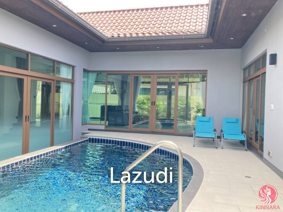 Exquisite Villa in Choeng Thale, ThalangIntroducing Ocean Palms VillaDiscover the epitome of luxury living at this extraordinary villa located in the prestigious Ocean Palms Villa in Bang Tao, Phuket. This exquisite 3-bedroom, 3-bathroom villa offers a spacious interior of 392.4 sqm on a sprawling 907.6 sqm plot of land, all on one expansive floor. The property is offered freehold and comes fully furnished, ready for immediate occupancy.Step through the stylish entrance featuring modern architecture and stone accents into a serene oasis. The outdoor area boasts a private swimming pool with waterfall features, surrounded by a tastefully paved poolside and lush palm trees for ultimate privacy. Enjoy outdoor showers, sunbathe on lounge chairs, or relax under the thoughtfully designed patio area.Inside, the home is flooded with natural light, accentuated by large glass windows and sliding doors, creating a seamless indoor-outdoor flow. The elegant living room features a high vaulted ceiling, modern chandeliers, and contemporary decor, providing comfort with air conditioning. The kitchen is a culinary delight with modern appliances, granite countertops, and a functional island with ample storage. Each bedroom is designed with sophistication, offering sumptuous bedding, large windows, and tasteful decor. The bathrooms are luxurious, highlighted by a jacuzzi tub and seamless walk-in shower.