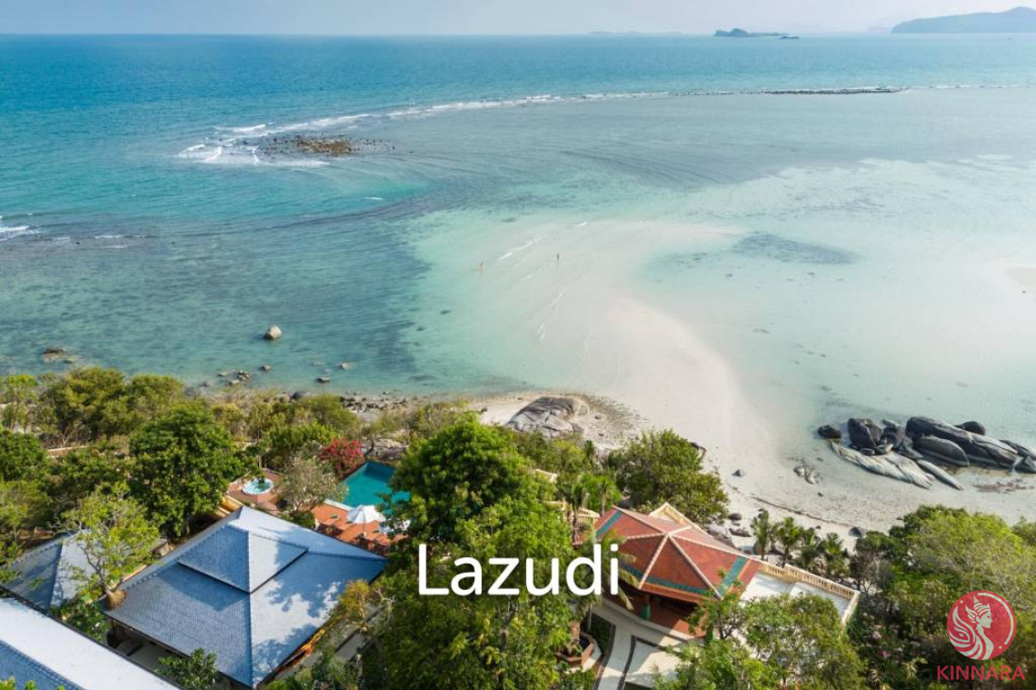 Nestled on the southeastern headland of Koh Samui, this exclusive beachfront villa redefines tropical elegance. Set on 7 rai of meticulously landscaped gardens and boasting over 100 meters of pristine beach frontage, this architectural masterpiece offers an unrivaled blend of privacy, breathtaking natural beauty, and refined sophistication. With uninterrupted views across the island’s stunning southern coastline, this villa embodies the pinnacle of luxury island living.