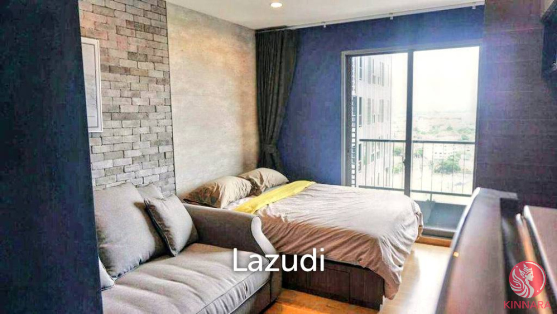 Nestled within the vibrant Ideo Mobi Sukhumvit Eastgate, this elegant 15th-floor condominium exemplifies modern convenience and urban living in Bangkok’s bustling Bang Na district. Spanning a compact 21.95 sqm, the space is optimized with smart design that enhances both comfort and functionality.