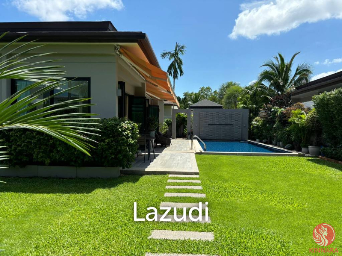 Luxury Villa in Peykaa Estate, PhuketExperience unparalleled luxury in this splendid villa located in the prestigious Peykaa Estate, Thep Krasatti, Thalang, Phuket. This exclusive property boasts a generous interior space of 260 sqm on a 676 sqm plot, offering 3 spacious bedrooms and 4 modern bathrooms, all under freehold ownership.Elegant InteriorsThe fully furnished villa features a contemporary design with elegant hardwood flooring, wall-mounted TVs, and ample natural lighting throughout. The bedrooms are havens of tranquility, offering access to outdoor spaces with pool views for a serene retreat.Exquisite Outdoor LivingEmbrace tropical living with a splendid outdoor area that includes a private swimming pool, lounge chairs, and vibrant tropical landscaping complete with palm trees and privacy fences. The well-manicured garden, patio seating, and evening lighting create an inviting atmosphere for relaxation and entertainment.Modern ConveniencesThe villa’s modern kitchen is equipped with high-end stainless steel appliances, a spacious island, and sleek cabinetry, ideal for gourmet cooking. The open-concept living and dining area offers stylish exposed wooden beams, a plush sectional sofa, and modern air conditioning for comfortable living.This luxurious villa in Peykaa Estate is a rare find within the community of just 18 units, offering privacy and exclusivity at a competi