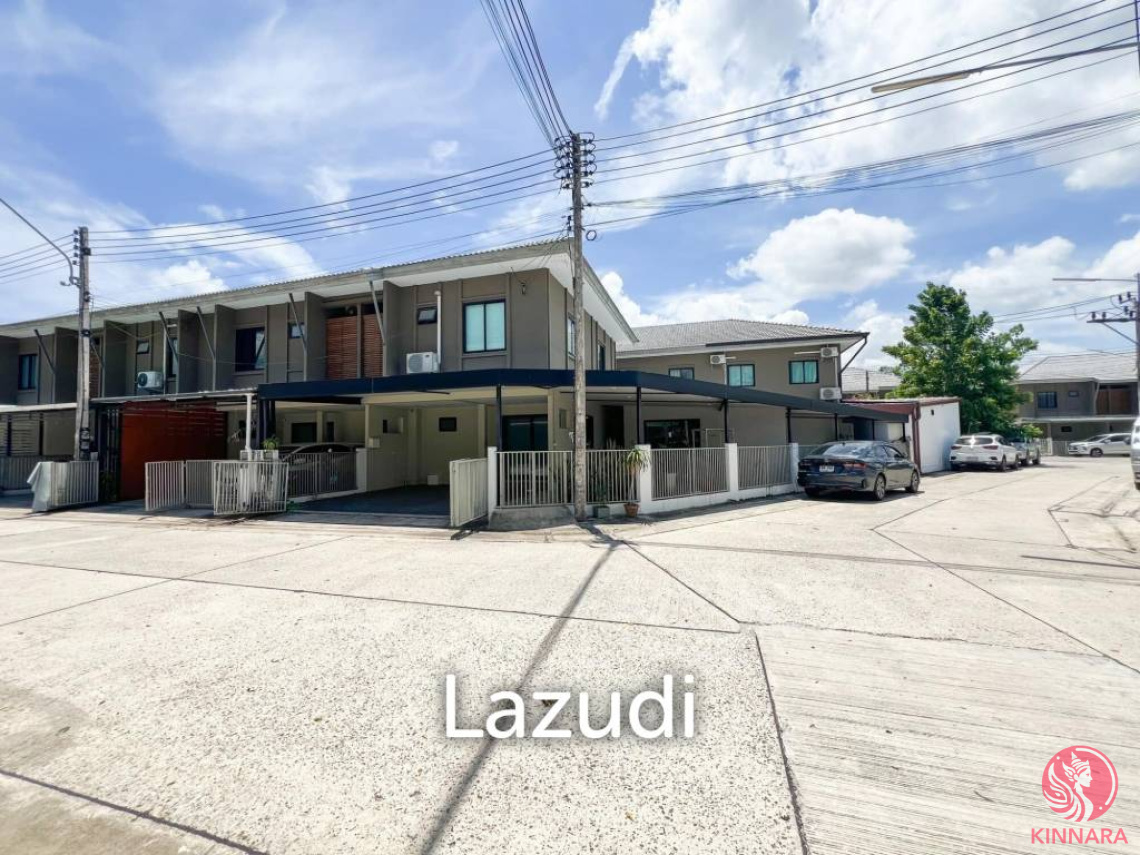 Modern 3-Bedroom Townhouse in Prime LocationThis stunning two-story townhouse, priced at 4,990,000 THB, offers a blend of modern design and functional living in a prime location. Spanning 200 sqm of interior living space and set on a 174.8 sqm plot, this home features three spacious bedrooms and three contemporary bathrooms.Exceptional InteriorElegant living room with hardwood flooring, modern entertainment setup, and large windows for natural lightStylish kitchen with black and white cabinetry, marble flooring, stainless steel appliances, and contemporary lightingSpacious bedrooms with hardwood flooring, air conditioning, sleek built-in wardrobes, and ample natural lightBathrooms with modern fittings, including shower enclosures, wall-mounted sinks, and stylish tilesOptional furnishing available to suit your personal styleOutdoor and Community FeaturesThe property includes a covered patio with dining area, perfect for outdoor entertaining, and a gated entrance with a concrete driveway leading to a covered parking area. The modern aesthetic extends to the minimalist facade and outdoor lighting.Situated in a well-established community, residents benefit from nearby amenities such as top-rated schools, shopping centers, and recreational parks. This freehold property offers an exceptional opportunity to own a spacious, modern home in a highly sought-after location.