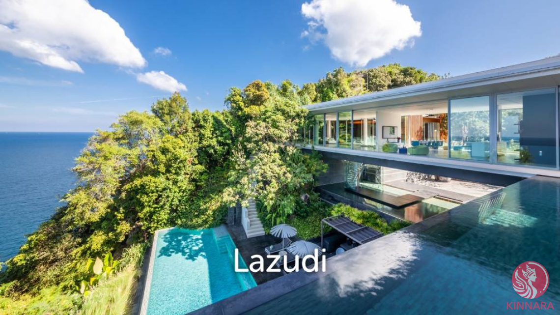 Situated on a cliff top, Villa Mayavee faces westwards across the open ocean to glorious sunsets and is securely and privately situated at the end of a magnificent treelined boulevard of mature tropical trees within a spacious private residential estate of only 8 other premium homes and lots. Such is the position, that one can gain 360 Degree views from the property especially the iconic sunset roof terrace, which must rank as one of Phuket’s finest view points.