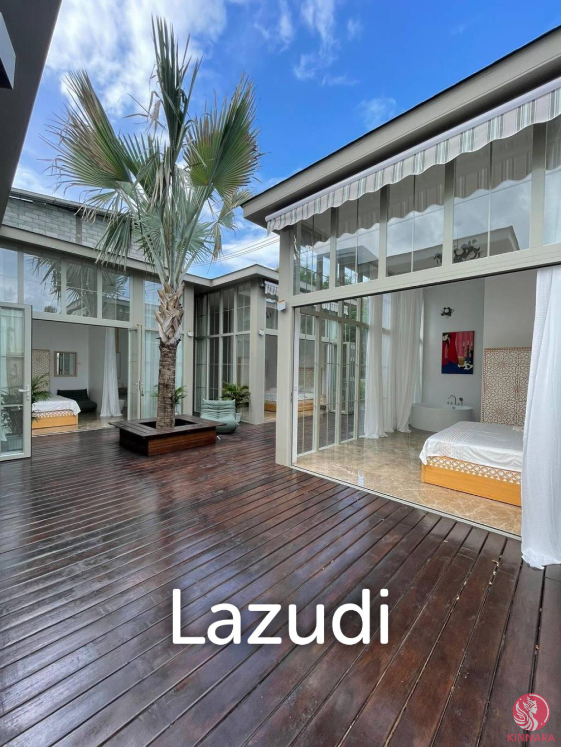 Centered around a serene courtyard, this all-glass property features a unique design that you won’t find anywhere else, emulating an outdoor-indoor living experience. It comes fully-furnished with imported furniture, has real marble flooring throughout the interior, and red-wood decking covering the entire exterior.