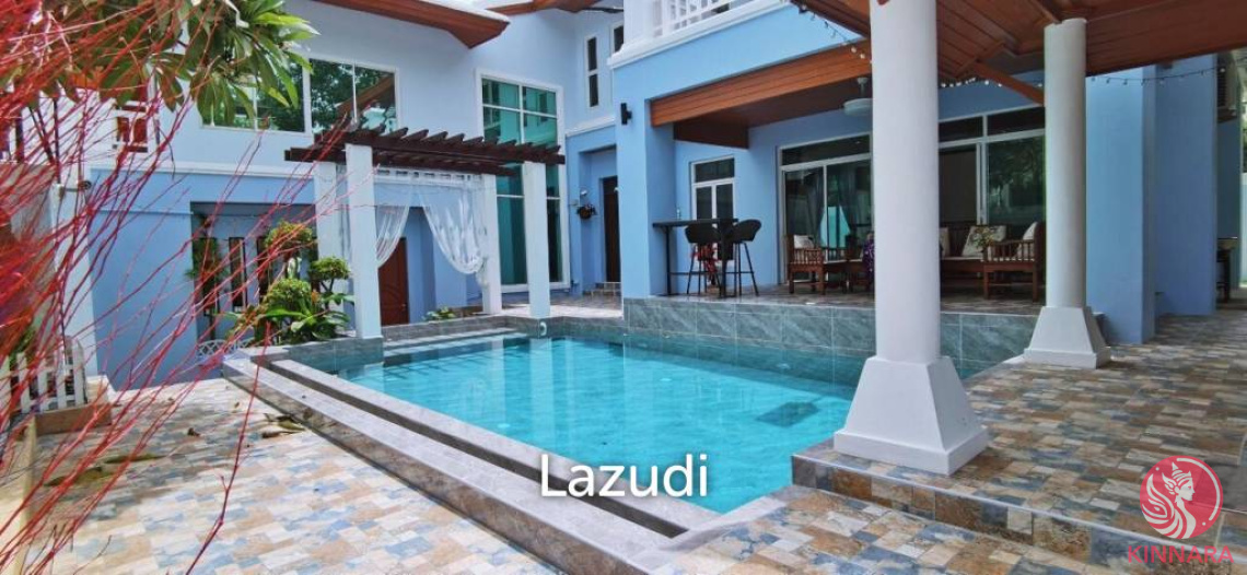 This is 4 Bedrooms, 5 Bathrooms House for Sale in Pratumnak, Setting on 420 Sqm of land plot size, 350 Sqm of usable area, comes fully furnished with quality fittings, built-in European kitchen, with full crockery, air 4 way cassette , electric hob, electric oven, en-suite bathrooms with bath tub, large living area with table set, large balconies, private swimming pool with jacuzzi.
