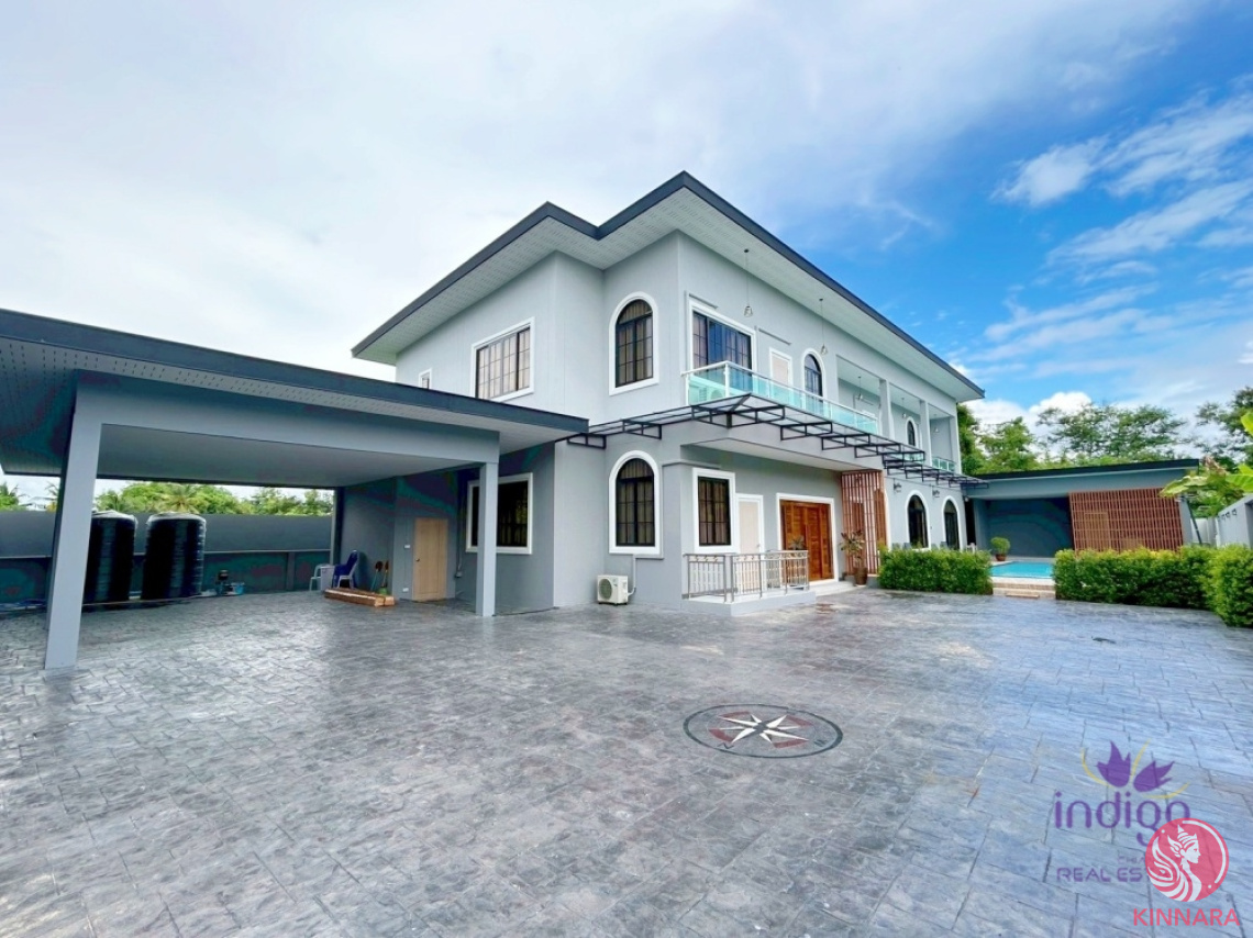 Discover this impressive brand new 4-bedroom, 5-bathroom pool villa in a peaceful, semi-rural area of Sansai, Chiang Mai. With a generous built-up area of approximately 570 sqm, this grand home offers privacy, space, and comfort — perfect for families, remote professionals, retirees, or those seeking a spacious home for both living and entertaining.Property Highlights:- Expansive private swimming pool with deck space for outdoor relaxation and gatherings- Spacious driveway with ample parking- Large ground floor bedroom with ensuite — ideal for elderly family members or guests- Bright and open living/reception area- Entertainment room with pool table, bar, and home theatre — perfect for hosting friends or relaxing at home- Modern kitchen with plenty of workspace and storage- Three oversized bedrooms upstairs, each with its own ensuite bathroom- Balcony with tranquil views overlooking the pool and surrounding greeneryLocation:Set in a quiet, natural environment with no garden to maintain, this home is ideal for those who want the beauty of a rural setting with the convenience of city access.- Just 2 minutes from Road 118 (Chiang Mai–Doi Saket Road)- 4 minutes to Meta Mall- 6 minutes to Samyak Market- 12 minutes to Central Festival Chiang Mai- 25 minutes to Chiang Mai International AirportThis is a rare opportunity to own or rent a newly built luxury residence in one of Chiang Mai’s most sought-after emerging areas.Suitable for:- Large families- Professionals needing home office and entertainment space- Investors looking for a high-end rental property- Anyone seeking a luxurious, low-maintenance home close to natureContact us today for more information or to schedule a private viewing.