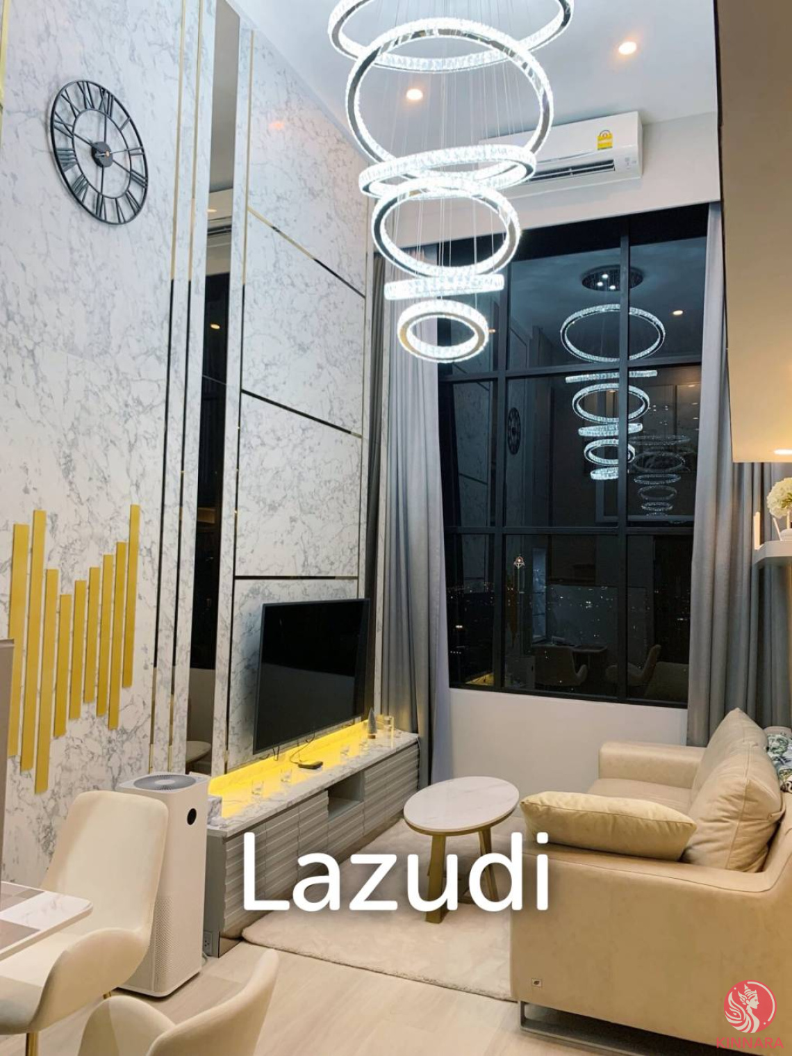 Situated in the heart of Bangkok’s bustling Sathon district, this exquisite two-bedroom, one-bathroom duplex condo offers a unique living experience at the prestigious Knightsbridge Prime Sathorn. Located on the 32nd floor of a 43-story tower, this freehold property boasts unparalleled views of the city’s skyline through its expansive floor-to-ceiling windows.