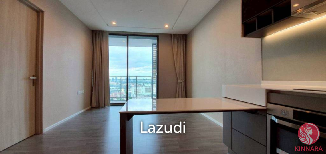 The condo’s design maximizes the abundance of natural light, thanks to its expansive floor-to-ceiling windows that offer captivating views of Bangkok’s skyline. The living area features warm wooden flooring, recessed lighting, and neutral wall tones, creating an inviting and sophisticated ambiance.