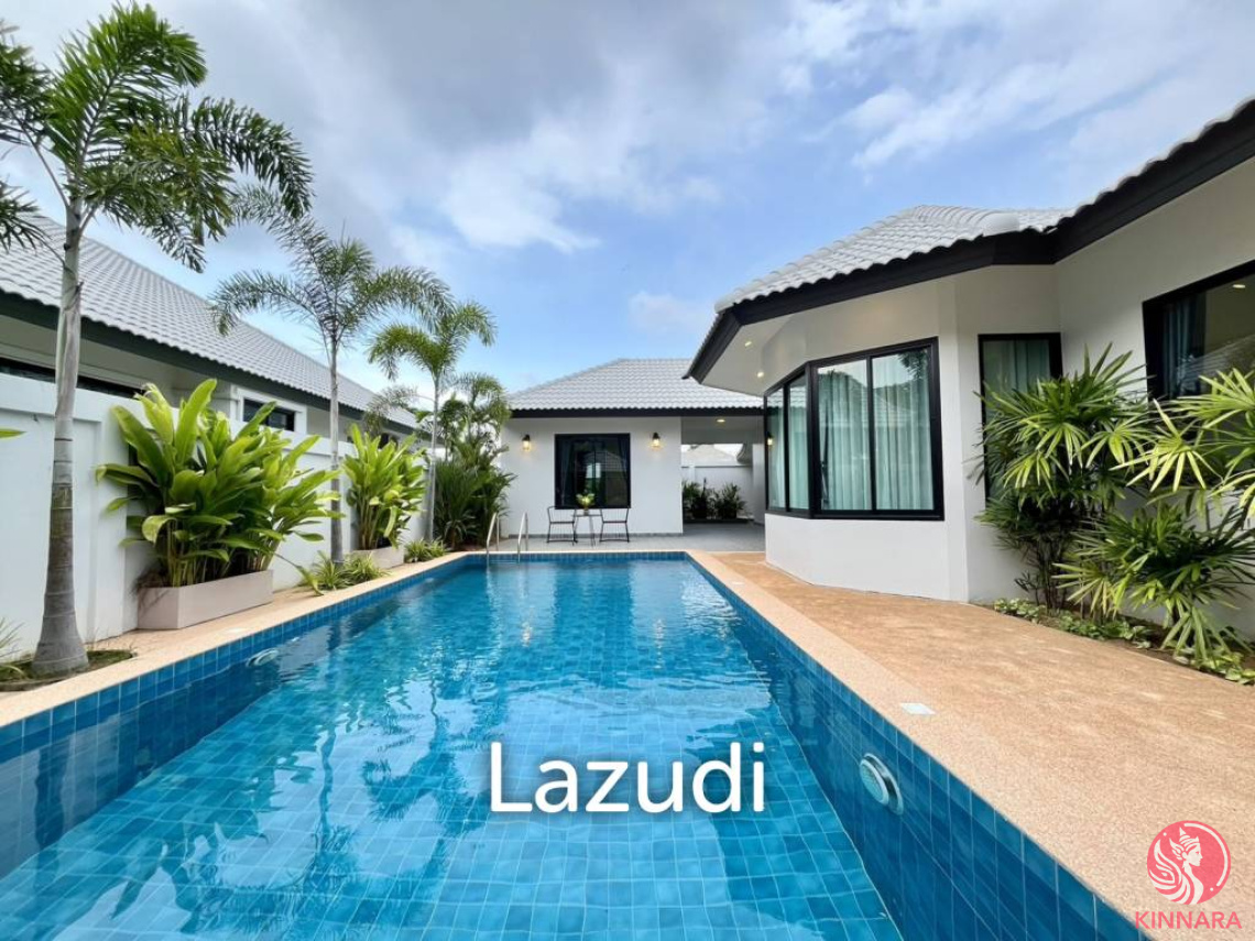 This is Single House 4 Bedrooms, 3 Bathrooms for Sale in East Pattaya. Sitting on 480 Sqm of land plot size, 198 Sqm of usable area, comes fully furnished and includes a European-style kitchen, a dining area, a spacious living room, and a private garden, including a spacious private swimming pool.