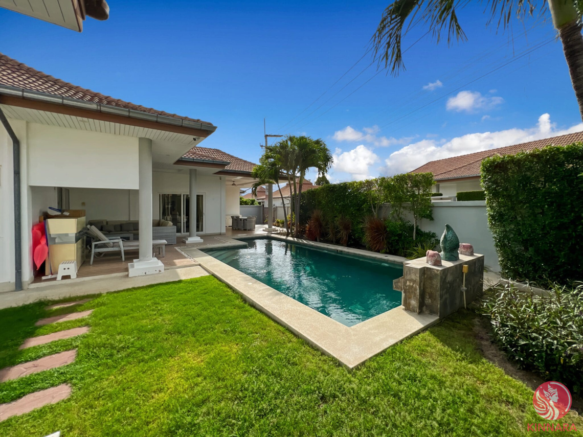 Located in the highly sought-after Mali Residence on Soi 102, this beautifully designed single-storey villa offers a perfect blend of comfort, style, and functionality. Just a 10-minute drive to Hua Hin town centre and Bluport Shopping Mall, the property is set in a tranquil community with 24h security, communal area and shuttle bus to and from Hua Hin town 4 times a day.