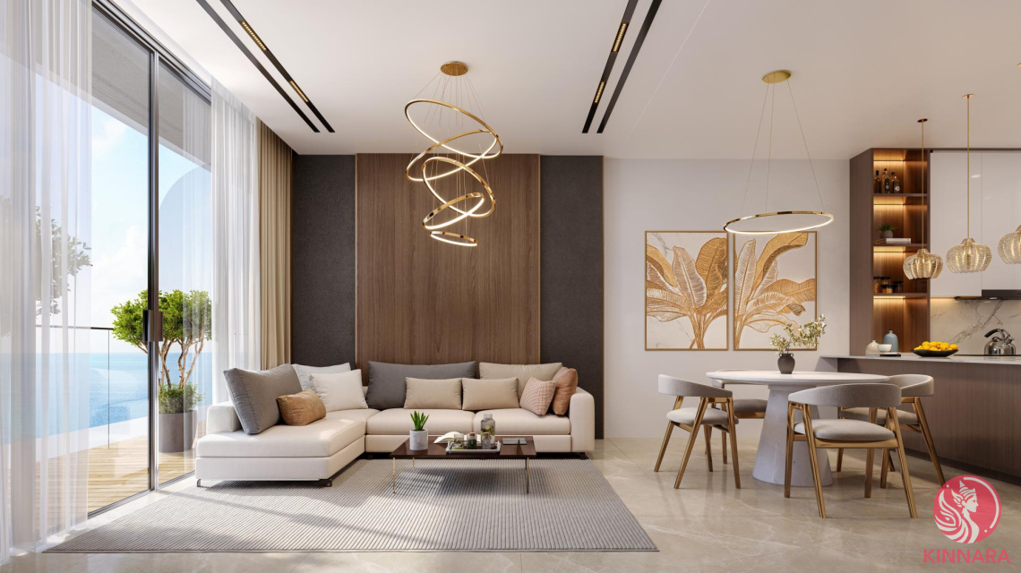 The residential units are diverse, offering apartments with 1, 2, 3, and 4 bedrooms. All apartments are equipped with panoramic windows that provide stunning views of the Persian Gulf. Some apartment types include windows in the bathrooms, enhancing both natural light and a sense of spaciousness. Ceiling heights reach 3 meters, creating an open and airy atmosphere. The apartments are finished to a high standard and come fully furnished, including soft furnishings.