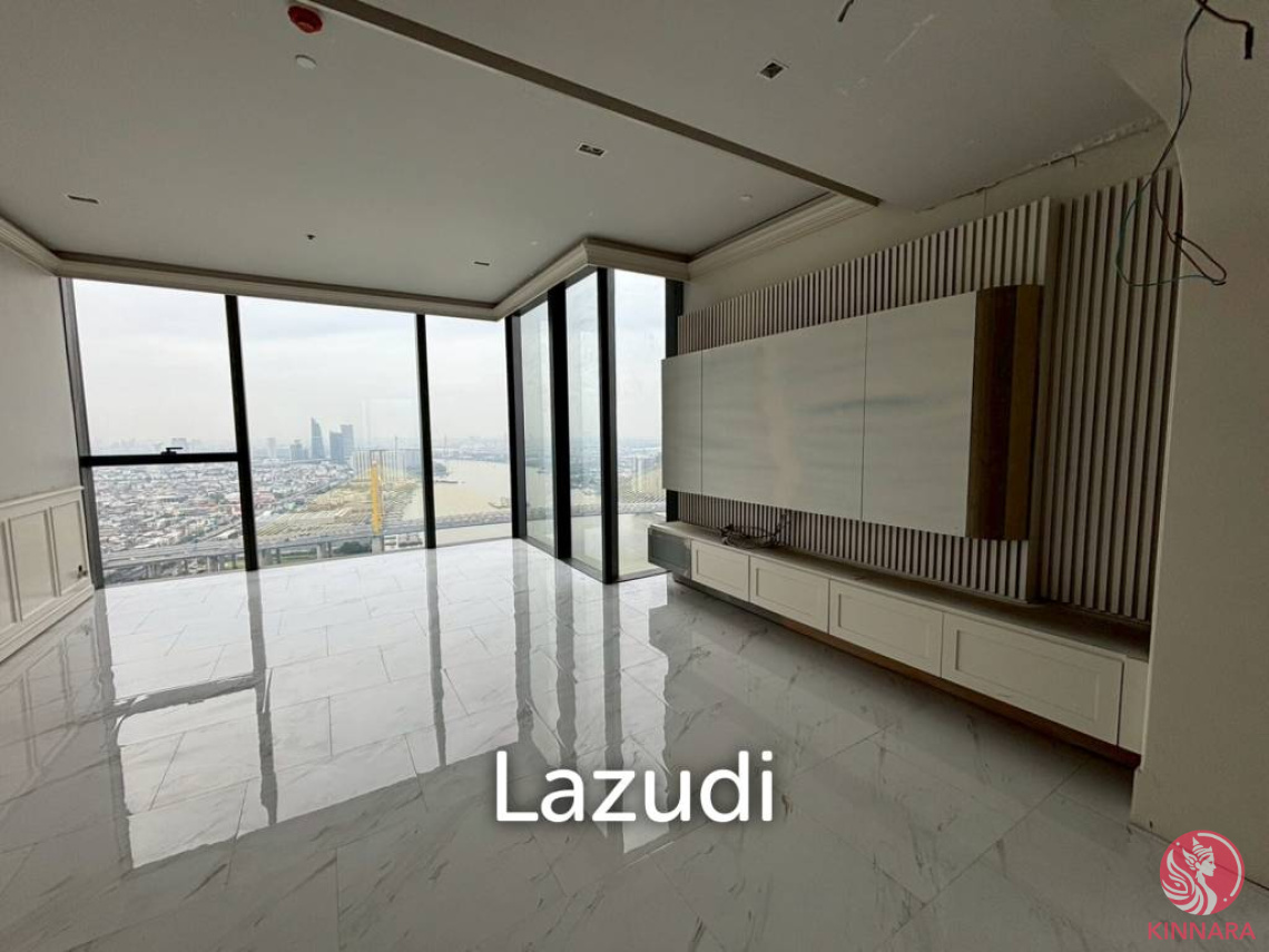 位于Canapaya Residences的惊艳曼谷复式公寓 这座全新的高层公寓坐落于曼谷备受追捧的邦克拉姆区,提供奢华的都市生活体验。位于备受尊崇的Canapaya Residences第42层和第43层,这套宽敞的307.98平方米复式公寓拥有落地大窗,自然光线充盈室内,尽览全景城市天际线,现代设计搭配大理石与瓷砖地板,彰显奢华质感。 公寓设有四间宽敞卧室和五间精致浴室,每间浴室均采用当代大理石装饰及玻璃淋浴间。开放式客厅与阳台无缝连接,是享受壮丽景致的理想空间。楼梯配备优雅的玻璃扶手和木质踏板,为这套绝美住宅增添现代气息。 厨房采用极简风格设计,配有黑色台面和开放式置物架,等待您的个性化打造。无家具设计让买家能够自由定制内部空间。 项目共57层,仅有188个独家单元,Canapaya Residences确保隐私与高端生活品质。产权为永久产权,坐落于曼谷繁荣地段,交通便利,紧邻充满活力的文化与娱乐中心,是极具潜力的投资选择。 这套精致物业完美呈现了曼谷奢华生活的核心要素。