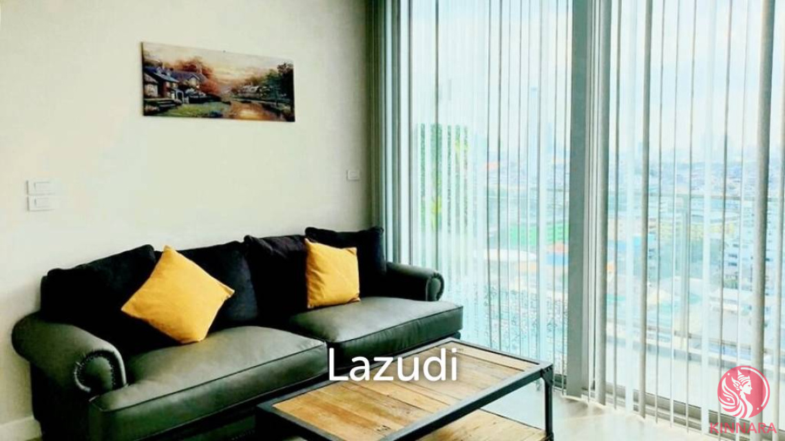 Welcome to your urban oasis! This contemporary 1-bedroom, 1-bathroom condo offers a perfect blend of style, comfort, and convenience. With a generous 53 sq.m of well-designed living space, this unit is situated just steps away from BTS Wongwian Yai, providing seamless access to the heart of the city.