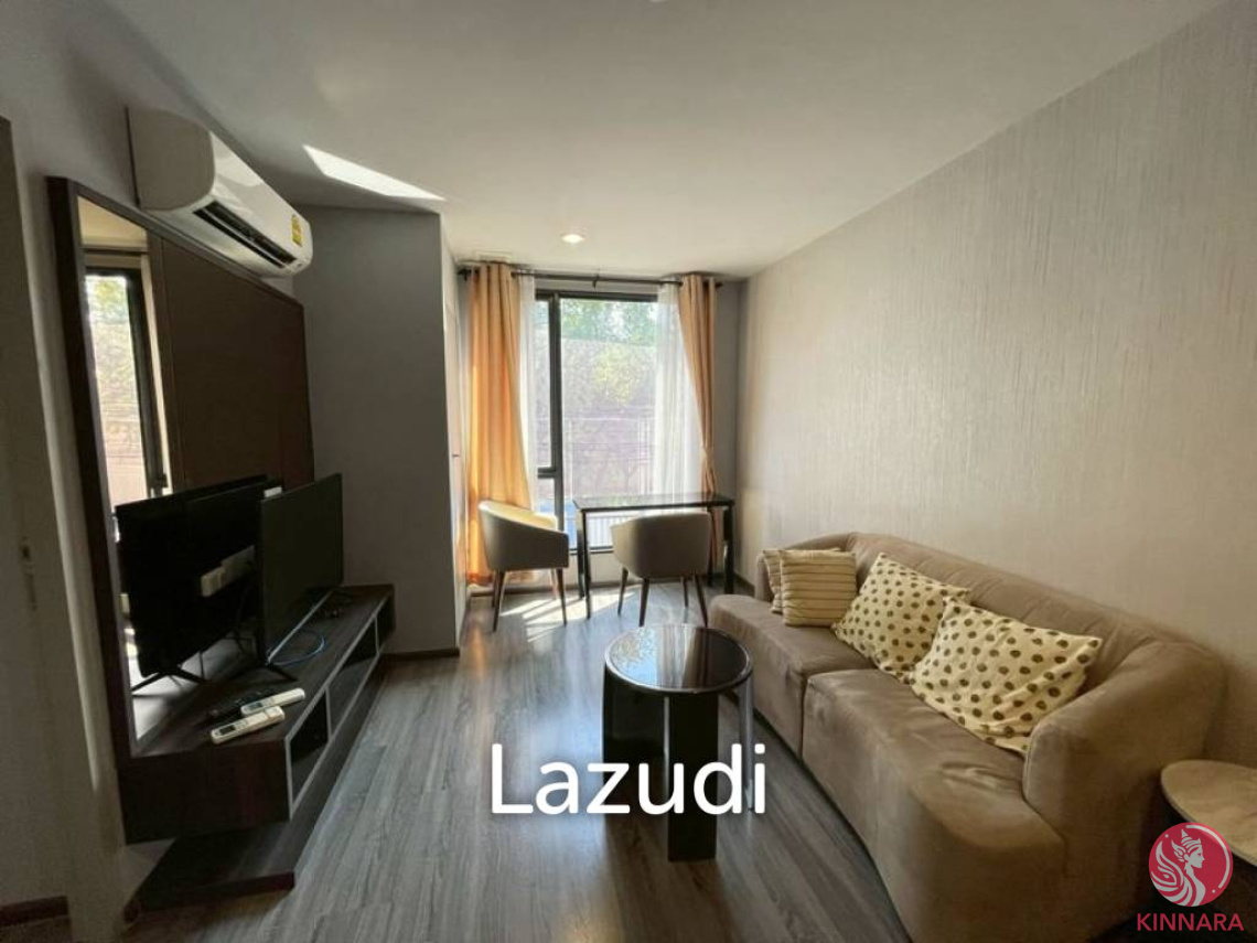 Elegant Condo Living in Phra KhanongNestled in the heart of Khlong Toei, Bangkok, the Ideo Mobi Sukhumvit 40 offers a modern living experience in a thriving new development. This one-bedroom, one-bathroom condo, spanning 34sqm, benefits from a freehold ownership, guaranteeing long-term security and investment potential.Stylish Interior DesignThe fully furnished interior showcases meticulous attention to detail. Step into the living room, adorned with wooden flooring, where large windows usher in ample natural light. Equipped with air conditioning, a flat-screen TV, and a comfortable sofa, it provides a perfect retreat from the bustling city.Comfortable Living SpacesThe bedroom continues the theme of comfort and style with a double bed framed by curtains that offer both privacy and elegance. The spacious bathroom features a glass shower enclosure, modern sink, and contemporary fixtures, ensuring a touch of luxury in daily routines.Functional Kitchen and AmenitiesThe compact kitchen is efficiently designed with a stainless steel sink, electric cooktop, and modern cabinetry. Added conveniences include a microwave and washing machine, making everyday tasks effortless.Residents of Ideo Mobi Sukhumvit 40 also benefit from a strategic location with easy access to transportation, shopping, and dining options, enhancing both lifestyle and convenience.