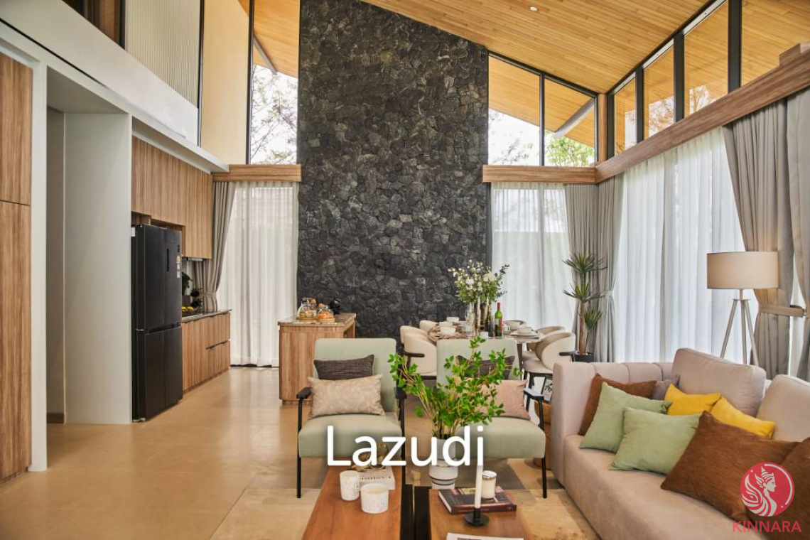 The Elegance (Type M) villa expands on space and versatility, offering around 413 square meters of usable area. This type comes with 4 bedrooms and 4 bathrooms, designed with larger households in mind. The residence incorporates two living areas and ample parking for three cars, complete with an EV charging station, plus one golf cart space. Its generous interiors provide a refined lifestyle that blends style, convenience, and practicality, making it ideal for families who value both comfort and modern living.
