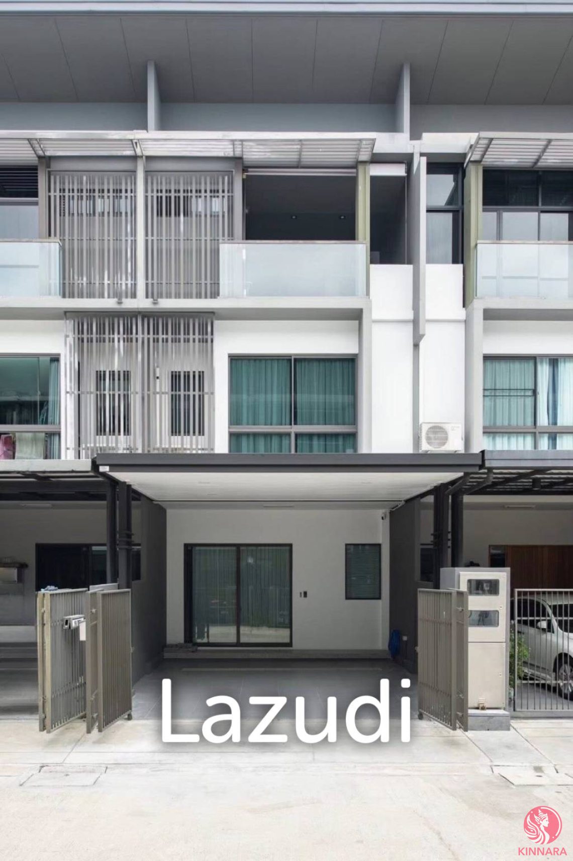Exquisite Townhouse Living in Lat Phrao Located in the prestigious Landmark Ekamai-Ramindra, this stunning 3-bedroom townhouse offers an unrivaled lifestyle opportunity in the heart of Bangkok’s popular Lat Phrao district. Spanning over 168 sqm, this property unfolds across three stylishly designed floors, amidst a gated community of 245 exclusive units. Elegant Design and Premium Features Filled with natural light, the modern design employs expansive floor-to-ceiling windows, ensuring an airy, open-plan feel. The main living area boasts a sleek brown leather sofa and a high-gloss tiled floor, offering both comfort and luxury. A designated dining area with modern lighting complements the seamless indoor-outdoor flow facilitated by sliding glass doors. Luxury and Practical Living Each bedroom is beautifully appointed with thoughtful design touches like tufted headboards and large windows. Modern bathrooms feature glass shower enclosures and contemporary fixtures. The fully furnished kitchen comes equipped with premium built-in appliances, perfect for culinary enthusiasts. Convenient and Secure Enjoy the convenience of two-car covered parking and the peace of mind of a secure gated entrance. The vibrant location offers quick access to major roads, allowing for easy commutes and city exploration. This is more than a home; it is your private retreat within bustling Bangkok.