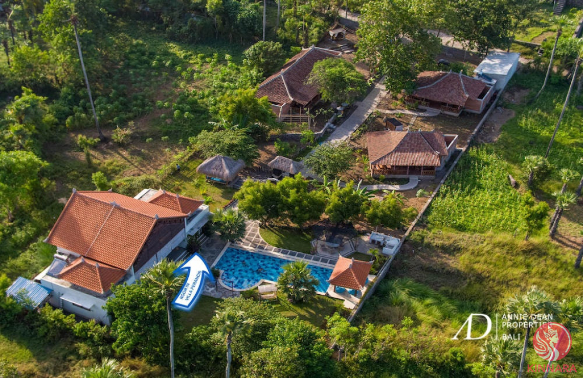 The property features traditional Balinese-style bungalows that provide stunning panoramic views of Mount Agung. Located just 900 meters from a pristine black sand beach, it enjoys an ideal position midway between Tulamben and Amed, granting guests easy access to some of Bali’s premier diving spots within a short five-minute drive.