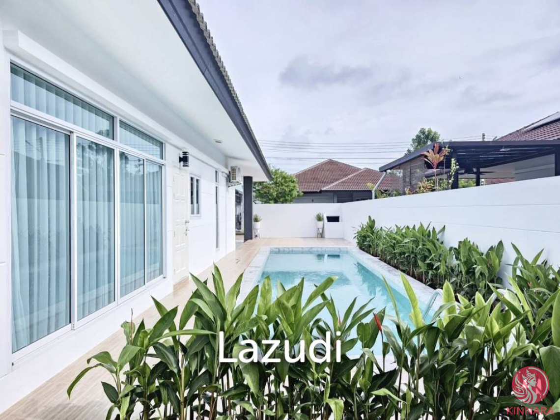 This is 3 Bedrooms, 2 Bathrooms Single House for Sale in Huay Yai. Is Available in Thai Name Ownership, sitting on 418 Sqm of land plot size, 350 Sqm of usable area, comes full furnished, European kitchen with full equiptment, island bar counter, open plan living area with comfortable sofa, flat screen TV, built-in wardrobe, en-suite bathroom, small garden, covered car park and private swimming pool.