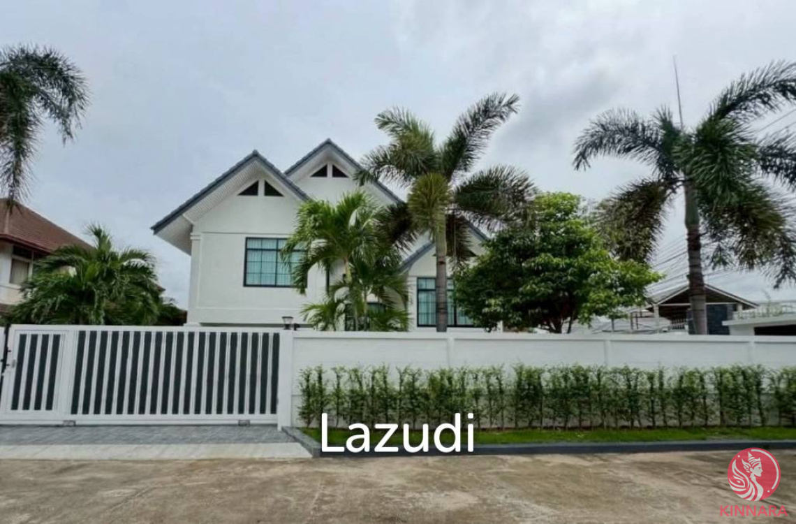 This is New Renovated Three stoery 4 Bedrooms, 6 Bathrooms House for Sale in East Pattaya. Is Available in Thai Name Ownership, sitting on 488 Sqm of lans plot size, 219.54 Sqm of usable area, comes full furnished, European kitchen. Spacious design and high quality built-in furniture. Enjoy the large shaded garden and the amazing private pool that is perfect for relaxing. All rooms are air-conditioned for comfort, making this a peaceful place to stay.