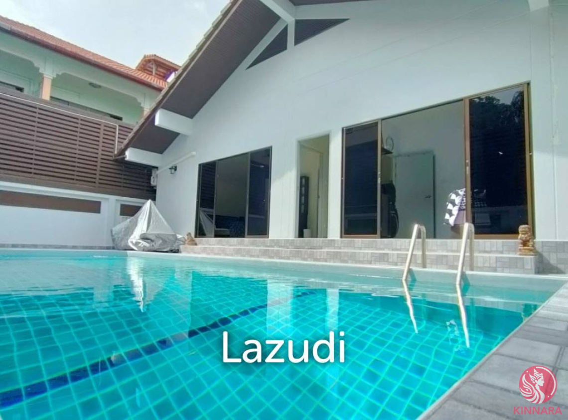 Exquisite Modern Villa in the Heart of Pa TongEmbrace the ultimate island lifestyle with this luxurious 3-bedroom, 3-bathroom villa nestled in the vibrant community of Pa Tong, Kathu, Phuket. Perfectly designed for comfort and style, this fully furnished freehold property boasts a contemporary architecture that seamlessly blends indoor and outdoor living spaces.Outstanding FeaturesSpacious interior: 268 sqm with abundant natural light through large windows and sliding glass doors.Modern amenities: Fully equipped kitchen with stainless steel appliances, open-concept living area with entertainment center, and sleek dining room.Relaxation spaces: Black leather sectional in the living room, complemented by tasteful art and neutral tones.Outdoor BlissStep into your private oasis through an expansive covered patio leading to an inviting outdoor swimming pool, framed by privacy fencing. Perfect for entertaining or unwinding in style, this space includes a tiled pool surround and lush garden views.Located in a prime Phuket area, enjoy proximity to world-renowned beaches, vibrant nightlife, and diverse dining options. With modern conveniences like air conditioning and high-end furnishings, this villa is a sanctuary curated for those seeking both elegance and convenience.Experience a harmonious blend of tranquility and excitement in this stunning villa. Your dream home awaits in Phuket’s most sought-