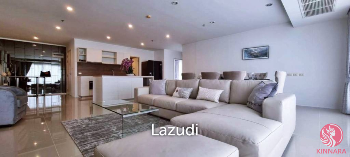 This is 3 Bedrooms, 3 Bathrooms Condo for Sale in Jomtien. Is Available in Foreigner Name Ownership, offering on 152 Sqm of living area, located on the 26th floor, comes fully furnished new double-glazed sliding doors and windows, block-out curtains, four new air conditioning units and luxurious furniture. The furniture includes a built-in TV wall unit with a 75’ television. European kitchen is equipped with microwave and a new double-door fridge in addition to all crockery, cutlery, glassware and cookware, good size bedrooms with two new built-in wardrobes, en-suite bathroom with bath tub on master bedroom. This unit also has hug balcony with nicely sea views.