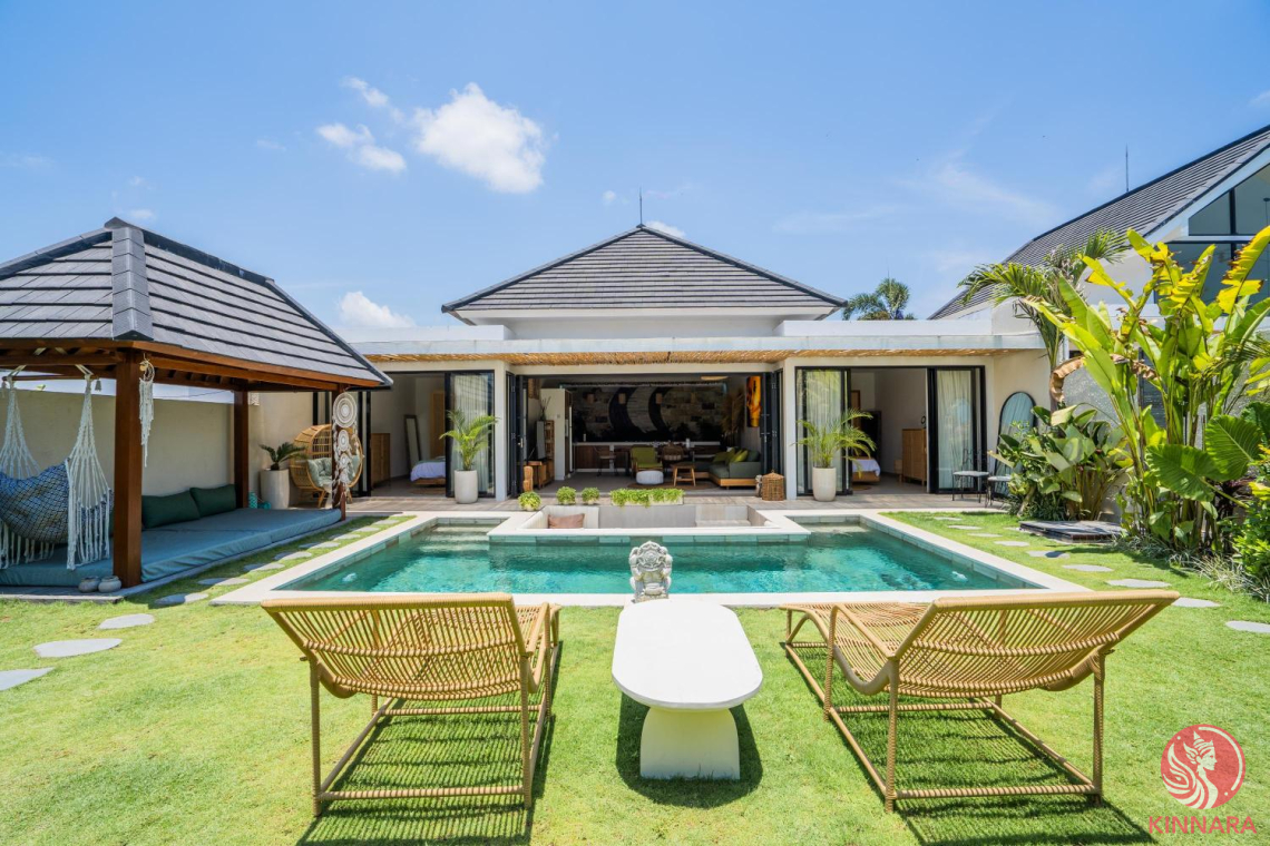 This beautifully finished villa in Kerobokan offers a modern tropical living experience with a spacious garden and private pool. Designed across two levels, the villa features three well-appointed bedrooms, each with its own ensuite bathroom for ultimate privacy and convenience. The semi-open living room allows for natural airflow and a relaxed ambiance, while the enclosed kitchen is fully equipped to meet all your culinary needs. The villa comes fully furnished with stylish, high-quality interiors, ensuring a seamless move-in experience. Situated on 300 sqm of residential land (ITR) with a 190 sqm building size, this home provides ample space for comfortable living.