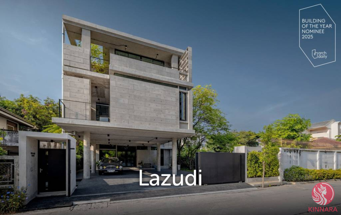 Modern Industrial Townhouse in Chan Kasem, BangkokDiscover this exceptional modern townhouse located in the vibrant district of Chan Kasem, Chatuchak, Bangkok. With a sophisticated industrial design, this multi-story property offers a total interior size of 486 sqm, perfectly situated on a 328 sqm plot. The impressive architecture is characterized by concrete facades and large floor-to-ceiling windows, complemented by landscaped greenery for a serene urban oasis.Spacious and Elegant InteriorThe townhouse boasts an open floor plan with polished concrete floors and ceilings, designed to enhance the flow of natural light. The living area features minimalist furnishings, a leather sofa, and indoor plants, creating a comfortable yet chic atmosphere. The space is further accentuated by modern track lighting and exposed ductwork, promoting an industrial aesthetic.Functional Living SpacesWith three bedrooms and four bathrooms, this fully furnished property offers ample accommodations. Each room is designed with contemporary fixtures and fittings, exuding a minimalist charm. The office and study areas provide built-in bookshelves and ample seating, bathed in bright natural light from expansive windows.Outdoor DelightsEnjoy city views from the balcony, crafted with concrete flooring and metal railings in a modern style. The accompanying private driveway and garage further enhance the convenience of urban living. This townhouse
