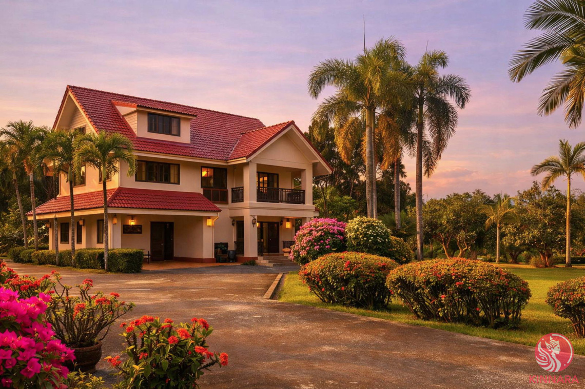 Mature gardens, a productive longan orchard, and mountain-view balconies create a relaxed, resort-like lifestyle. Natural light fills the interiors, and quality materials—teak doors and windows, hardwood flooring upstairs, and marble on the ground floor—give the home a timeless, well-built feel.