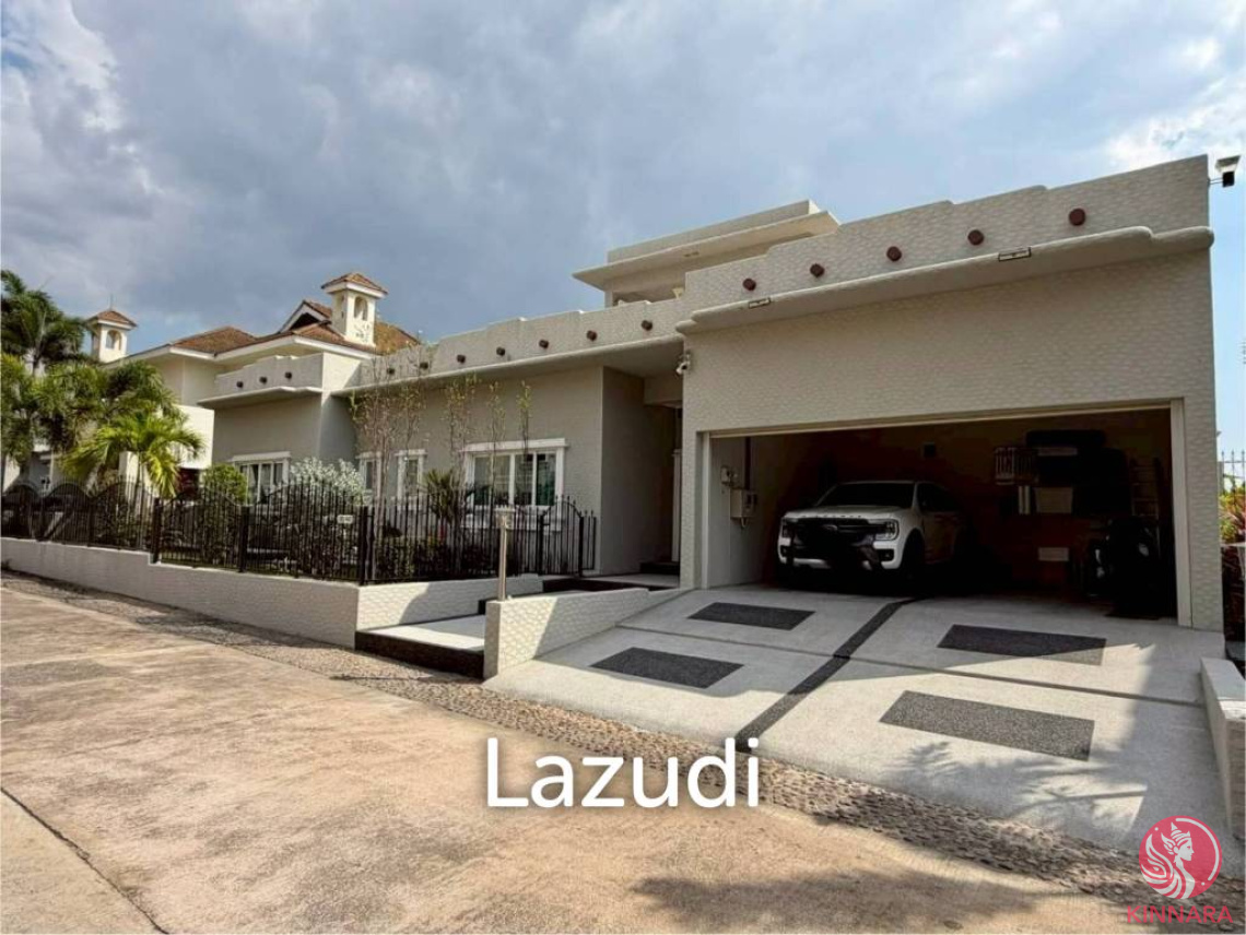 This spacious Two-story house 3 Bed, 4 Bathroom for sale at Santa Maria in Mabprachan. Is Available in Thai Company Name Ownership, sitting on 777.6 Sqm of land plot size, 270 Sqm of usable area, comes fully furnished, spacious interiors, modern design, European kitchens with fully equipped, en-suite bathroom with bath tub and Jacuzzi, the outdoor area is equally impressive. The property is equipped with a solar system and an alarm system, offering both energy efficiency and enhanced security. A private swimming pool with Jacuzzi creates a relaxing retreat, surrounded by a well-maintained garden that adds greenery and tranquility to the space.
