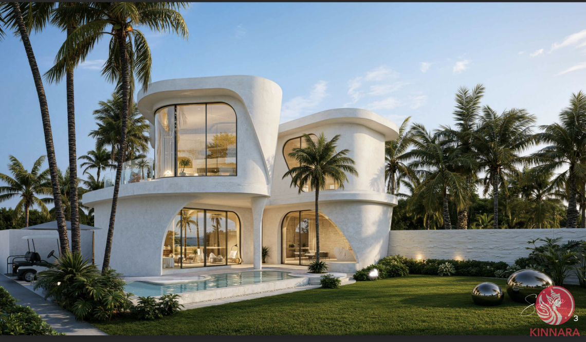 Living spaces extend naturally onto sunlit terraces, creating a connection to the outdoors while framing uninterrupted sea views through expansive glass panels. The inclusion of a private pool adds an element of resort-style comfort directly accessible from the main living areas.
