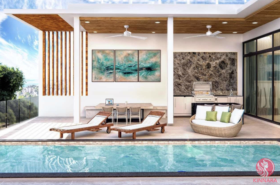 The open-plan layout features high ceilings, bright interiors, and high-quality finishes, while the spacious living and dining areas flow seamlessly into the outdoor spaces. Enjoy a refreshing private pool with panoramic views, an outdoor barbecue area, a fully equipped kitchen, and spacious terraces perfect for al fresco dining or relaxing.
