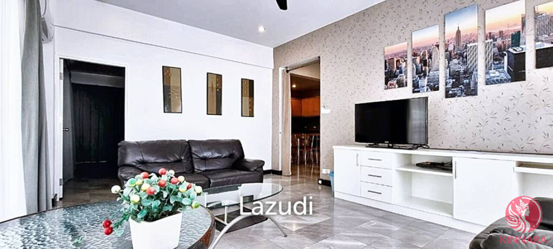 This is Spacious 2 Bedrooms, 2 Bathrooms Condo for Sale or Rent in Central Pattaya, offered 104 Sqm of living area, located on the 6th floor, comes full furnished, European kitchen with dining area, open plan living area with sofa set, flat screen TV, built-in wardrobe, en-suite bathroom, balcony with partly sea view and pool view.