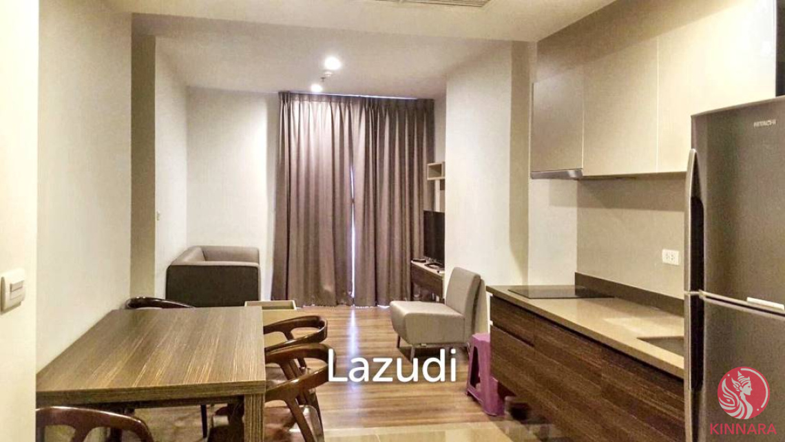 Nestled on the 21st floor of the prestigious TEAL Sathorn-Taksin, this 60 sqm condo offers a blend of modern elegance and city convenience. The residence is part of a high-rise building with 27 floors and 409 units, providing a vibrant community atmosphere. This freehold property showcases an open-plan living space, enriched with natural light and wooden flooring, seamlessly integrating into a functional dining area equipped with contemporary furniture.