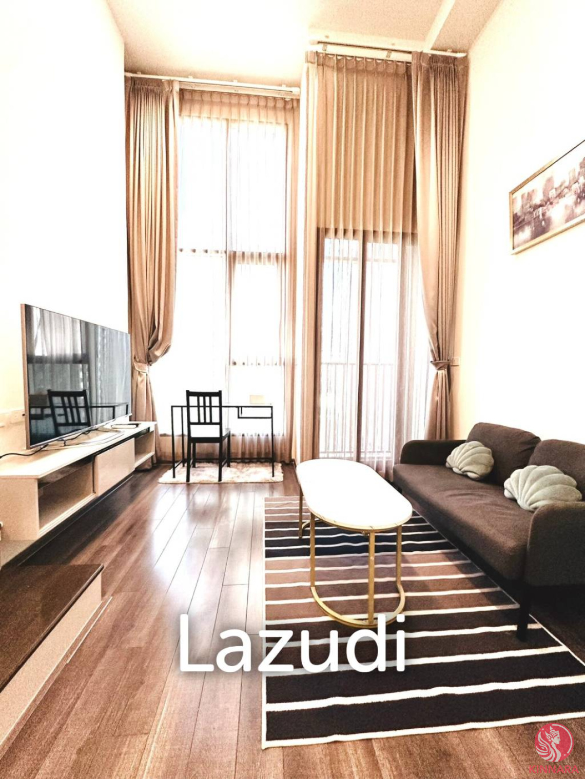 This 32 sqm one bedroom condo offers a stylish loft design on the 12A floor of Knightsbridge Space Rama 9 in Makkasan, Ratchathewi, Bangkok. The home presents a professional overview of smart vertical space and abundant light in a fully furnished freehold unit.