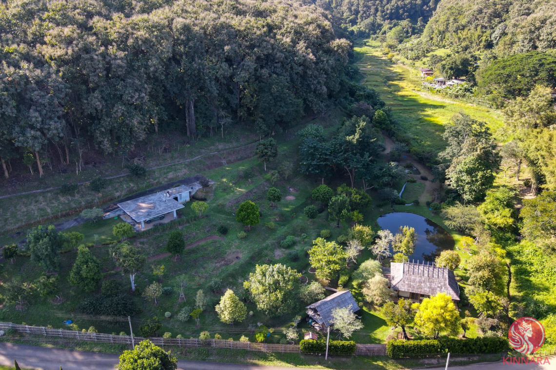 This unique 3 rai 3 ngan 96 square wah property in Mae Rim is characterized by its semi-hilly terrain, a private pond, and distinct, high-quality structures designed to ensure privacy and functionality. The land is architecturally prepared with separate upper and lower spaces, each having independent entrances, and includes a reserved, level, sloping area ideal for constructing a future main residence. The current structures comprise a concrete service building with three-car parking and a dedicated three-phase 50 KVA electrical system with a sophisticated three-step, 3,000-liter water filtration system connected to a large 30,000-liter underground groundwater tank, ensuring robust infrastructure. A second, one-story Japanese-style earthen house with a bamboo roof serves as a fully equipped bathhouse and private guest accommodation, featuring a kitchen, indoor bathtub, and outdoor shower, surrounded by a serene garden. Completing the layout is a teak wood gazebo suitable as a workshop and a two-meter storage shed. The property is bordered by forests and streams, offering a cooler climate, often 3-4°C lower than the city in winter. Its location is highly convenient, situated at the end of a quiet village with multiple access points, providing easy reach to Prem International School in approximately 5 minutes, Chiang Mai International Airport and the Old City within 30-40 minutes, and major shopping centers in 25-30 minutes.