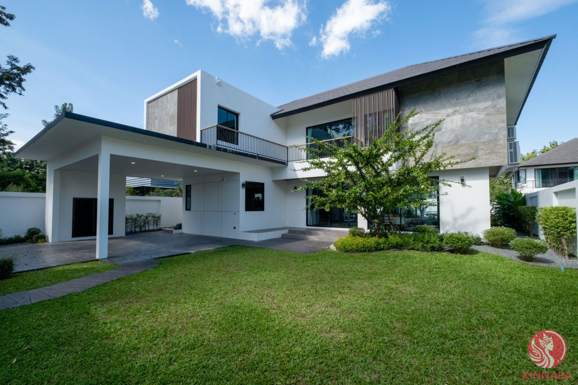 This professionally designed 550 square meter contemporary pool villa, situated on a 184 square wah (736 square meter) land plot in the Wang Tan Development of Hang Dong, presents a turn-key high-end residential opportunity featuring full luxury furnishing and premium materials throughout. The architectural focus is on privacy and expansive, functional spaces, incorporating four spacious bedrooms and five well-appointed bathrooms, including a primary master suite designed for maximum comfort and seclusion. Central to the propertys appeal is a private 3.5 by 9.5-meter saltwater swimming pool, complemented by sophisticated indoor-outdoor flow, a high-specification modern kitchen, and designated areas adaptable for a home office or media room, catering directly to the needs of international and discerning urban buyers. The property’s location offers exceptional practical convenience, being approximately 10 minutes from Chiang Mai International Airport and major private healthcare facilities, 5 minutes from prominent international schools, and within a 15-minute radius of lifestyle shopping centers and the historical Old City, positioning it ideally for seamless daily life and premium accessibility in Chiang Mai.