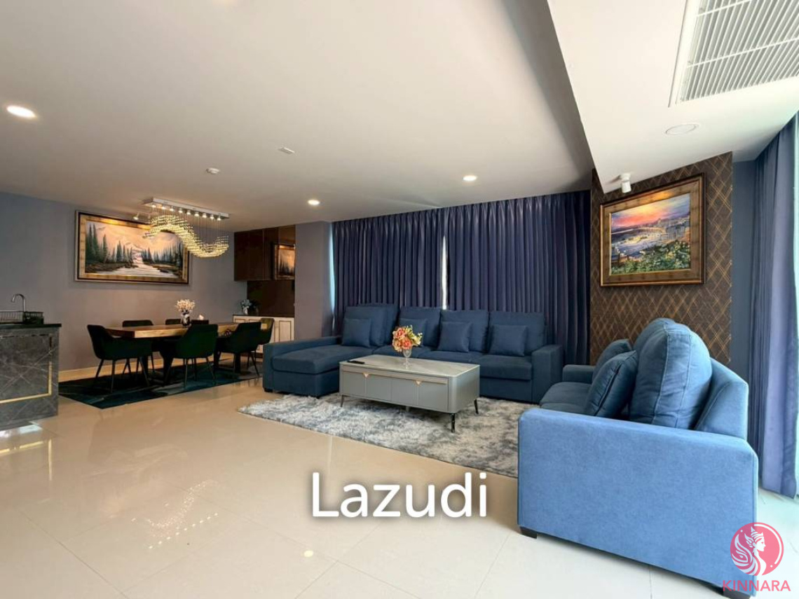 Extra-large unit with pool view balcony, 143 Sqm of living area, 2 Bedrooms, 3 Bathroom, on the 2nd floor, comes fully furnished with premium built-ins; Walk-in Closet; High-end appliances: 3 TVs (2x 65’, 1x 55’), large double-door fridge, washing machine, microwave, electric stove with hood; Luxury furniture: 9-inch thick solid wood dining table (6 seats), 4-meter U-shaped sofa with marble-top tables; Dunlopillo mattresses in both rooms; Beveled glass mirrors throughout; High-quality soft carpets; Includes 7 original oil paintings (valued at several hundred thousand Baht) with professional gallery lighting system.